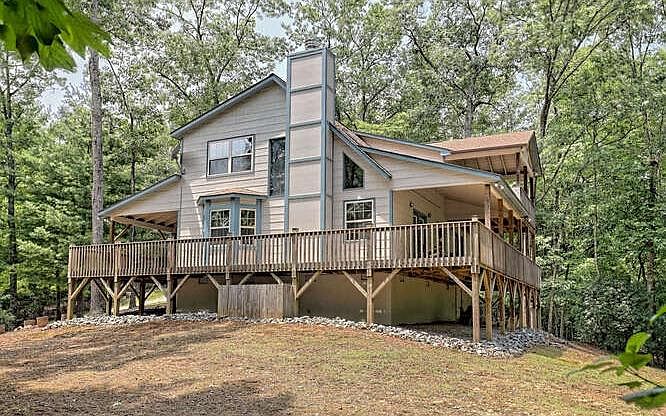 Immaculately Maintained! Professional craftsmanship with this cabin, it is basically brand new. On the main level it offers an Open Floor Plan overlooking the Spacious Living Area, plenty of space for Entertaining inside or out. Solid Hickory Cabinets, hardly used Appliances, Real Wood Floors, Stone Fireplace with Gas Logs, Custom Milled Poplar throughout the entire home. Upstairs offers a large loft for game area or more additional sleeping spaces. Expansive master bedroom with ensuite and large walk-in closet. Enjoy nature and the animals will sitting on the balcony. Located in the desired area in Ivy Bend Subdivision. All paved roads to cabin. Close to Murphy, McCaysville and Blairsville, white water rafting, shopping, hiking, biking, the list goes on. Don't miss out! Comes furnished with the exception of a few things.