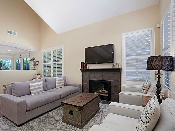 Ideally located just three miles from the beach, this beautiful home has numerous upgrades…The Living Room features oak hardwood floors, plantation shutters and gas fireplace. The kitchen offers granite slab counters, stainless steel appliances including a Bose dishwasher, metal roll-out drawer organizers, crown molding and Italian tile floors. The Dining Room features crown molding, hardwood floors, built-in surround sound speakers and custom black-out roman shades - great for energy efficiency! The downstairs bathroom features marble tile floors, granite vanity and crown molding. Step outside and enjoy the tropical backyard featuring lush landscaping with numerous mature palm trees and succulents, tranquil water fountain, outdoor speakers, redwood garden box and timed irrigation. The Master Bathroom features modern tile floors, built-in surround sound speakers, upgraded French doors and walk-in closet with built-in organizers. This home has central A/C and heat and features an Ecobee Thermostat that participates in SDG&E’s Reduce Your Use Program for reduced energy costs. Additional upgrades include security system, ceiling fans, new water heater, new rain gutters and new vinyl backyard fence.