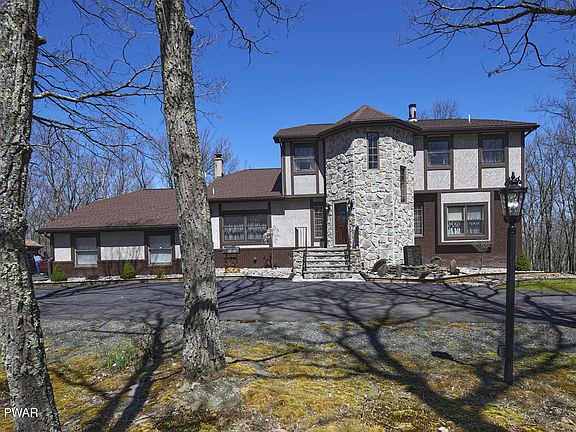 HIDDEN LAKE ESTATES CUSTOM MASTERPIECE SET ON 3.49 ACRES. IT'S ALL ABOUT THE DETAILS! Home features include: 5,346 Finished Sq/Ft, 4 Bedrooms, 4 Full Bathrooms, Hardwood & Travertine Tile Floors, Custom Kitchen w/ Gorgeous Quartz Tops, High End Appliances, Stone Faced Real Wood Fireplace, Primary Suite w/ Huge Walk-In-Closet, Private Outdoor Balcony, Separate Sitting Room, Double Sided Fireplace, Soaker Tub, Custom Shower w/ Skylight & Tile Work, Full Finished Basement w/ Sauna, Full Wet Bar, Hot Tub, Stone Patio, 2 Attached Garages Totaling 3 Bays, Paved Driveway, Koi Pond (bring your fish), In-Ground Pool, Fire Pit Area, Large Entertaining Deck, Mature Landscaping, Propane Heat, Central A/C and So Much More! Hidden Lake Estates is the best community near Lake Wallenpaupack.