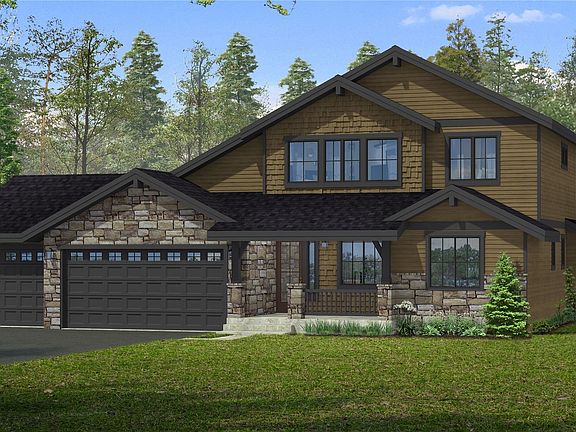 New home under construction by builder Landed Gentry and a part of our Mountain Home Collection in Domerie Park. Beautiful, 1.5 story home w/luxurious main level living & additional bonus space on the upper level, +3 car garage. Open & airy great room w/vaulted ceilings through kitchen, dining & living room. Large, covered patio w/686 SQFT of outdoor living space and gas firepit. Primary suite with optional fireplace, home office, 2 additional bedrooms, guest bath & the laundry/mudroom all on the main level. The upper level has a family room, full bath, bedroom, and an optional kitchenette. Plenty of room for guests and entertaining.