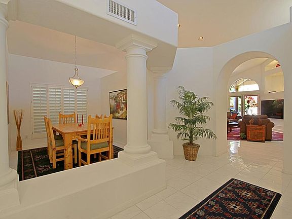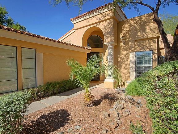 PREMIUM HILLSIDE LOT! Exquisite views from the top of the Pointe. Nestled into the mountainside with gorgeous sunset views, this single level beauty boasts formal dining, great room open to the kitchen for fun and easy entertaining. Custom media wall with fireplace and art niches with custom lighting that is just right. There are 2 large secondary bedrooms, an oversized master suite with walk in closet and full master bath. Cathedral ceilings at heights over 15 feet, plantation shutters, tile flooring, and the clerestory, palladium and bay windows make this home feel very open and bright. 80'''' LG TV on media wall with surround sound system available on separate bill of sale. Other furnishings may be available as well. Quiet neighborhood. HOA covers water,sewer, trash and UPGRADED CABLE!