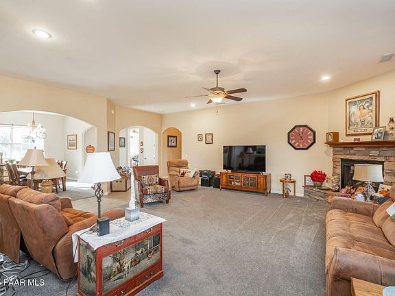 Come see this beautiful 3267sqft single level home siting on 2ac horse property. This house features; 10ft ceilings, 8ft doors, and an open concept kitchen. The home is great shape with an extra large master bedroom and luxurious master bath. Enjoy the mountain views from the back patio. The property has two 16x25 detached pull through garages, perfect for workshops or extra vehicle storages. Also full horse setup featuring a 2 stall barn, tack room and carport this property has everything you could need.