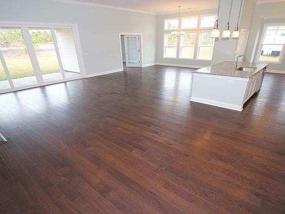 Extremely open single level home with 3 bedrooms, 2 ½ baths, an office and a 3 CAR GARAGE. The family room, dining room and kitchen have 11 foot high ceilings and plenty of windows. This home comes standard with hardwood floors throughout your living area, tile flooring in the bathrooms, and laundry. Spacious kitchen with a large island, includes granite counter tops, stainless steel appliances with gas range, 36 inch cabinets with crown molding, and a large work island. Big master suite with huge closet and the owners bathroom has a 5 foot wide tiled shower , and double bowl granite counter tops. Enjoy your large back yard from your covered porch, and there is plenty of room between the homes.