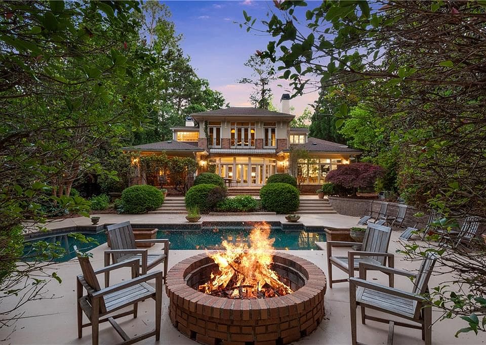 Welcome to this stunning mid-century modern home, nestled in the highly sought-after quiet Pine Hills neighborhood. This home was beautifully renovated and expanded in 1997, boasting an open and inviting floor plan with a host of sought-after features. As you step inside, the main living space is flooded with natural light, creating a warm and welcoming atmosphere. The library exudes coziness with its charming fireplace and built-in floor-to-ceiling shelving, making it the perfect spot for entertaining guests or relaxing with family. The large separate dining room is an elegant space, ideal for hosting dinner parties or enjoying meals with friends. From the great room's wall of windows, you can take in the beautiful view of the property, including the patio and pool – an entertainer's dream! Escape to your lanai for shaded relaxation or hosting. The private backyard, featuring gas fire pit, lush shrubbery and beautiful garden, provides a serene retreat in the heart of the city. The main floor features two bedrooms with two full baths and one half bath, providing ample space for guests or a growing family. The primary suite is located upstairs and boasts a fireplace, a wall of windows overlooking the pool and garden, and a spacious custom walk-through closet. The guest suite (or second primary) above the garage comes with a full bath and flex space, making it perfect for guests or as a private home office. The butler's pantry and laundry room make daily chores a breeze, while the flex space off the garage could serve as a mudroom or gym, providing additional storage space. Be sure to look beyond the fire pit to see the depth of this fabulous lot - Opportunity for pool house, guest suite, etc. Conveniently located with quick access to GA400 and 85, this home is close to shopping and dining, making it perfect for those seeking an urban lifestyle with easy access to everything Atlanta has to offer. With its 90’s expansion and unique style, don’t miss this amazing opportunity to make this Pine Hills home your own!