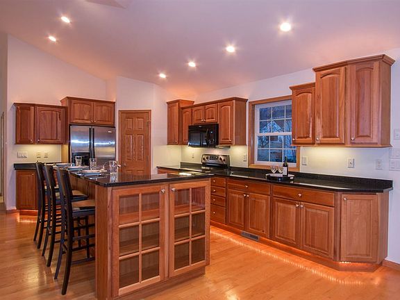 Attractive custom walkout ranch in Forest Edge Estates in great condition. Parade home w/plenty of amenities. Open plan main level is bathed in natural light during the day & glows w/cove lighting in the evening. Enjoy the fabulous custom screen porch w/wooded views, tranquil pond waterfall. Kitchen w/cherry cabinetry, granite, breakfast bar & pantry. Living rm w/fireplace. ML master suite, cathedral ceilings, hrdwd flrs. LL walkout family rm.