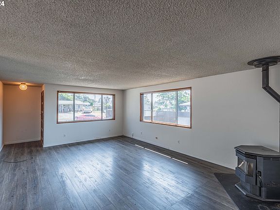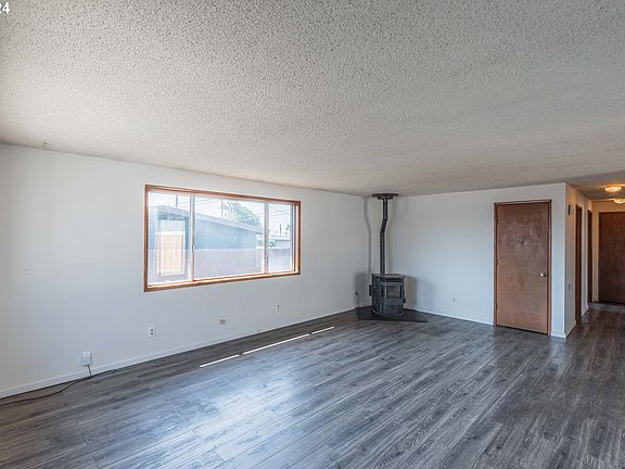 Charming 3-bedroom/1.5-bathroom residence situated on a spacious lot, located only a few miles away from the beach, featuring an oversized 2-car garage and convenient RV parking complete with sewer hookups. Step inside to discover a generously sized living area designed for both relaxation and entertaining, equipped with a pellet stove that keeps the whole home cozy and warm year-round. The living room and dining area showcase durable vinyl flooring, while the cozy bedrooms are fitted with plush carpeting for ultimate comfort. The Primary suite offers a large closet, an attached half bath with a separate pocket door entry leading you to the main bathroom that features a double sink vanity and a tub/shower combo. The kitchen boasts beautiful wood cabinetry, offering ample storage space and direct access to the oversized garage. Outside, you'll find a charming concrete patio and a large backyard, offering a secure and private space for outdoor activities, gardening, or simply enjoying the fresh air. Additional highlights include a durable metal roof, providing longevity and low maintenance while adding a sleek, modern touch to the exterior. This home is centrally located and offers both practicality and charm, making it a must-see. Schedule your visit today to explore all that this inviting property has to offer!