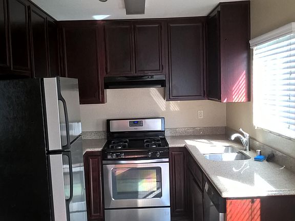 Nicely sized condo in secure family friendly complex, located close to schools, parks and 1.5 miles to the beach. Large 2 bedroom, 2 full bathrooms (upstairs unit), balcony , hardwood floors throughout, kitchen with new granite counter tops, gas stove, refrigerator, and a dishwasher. Additionally the unit has a ceiling fan in dining area, washer/dryer included in the unit, walk in closets in bedrooms. Trash and water included. 1 parking space in a covered secure garage structure and a private car garage (in alley way) . Rent is $1,950 with a $1600 deposit. Please email us to set an appointment to view unit. PET POLICY Cats- ok with additional deposit PET POLICY Cats- ok with additional deposit