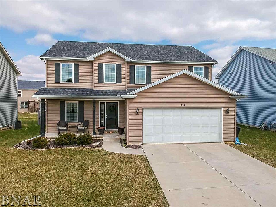 Great family home built in 2013 with curb appeal in The Vineyards. Short walk to highly sought after Grove Elementary and also close to Normal Community High School. The main level flows well with a very cozy feel and boasts only dark hardwood and ceramic tile. The large mud room off the garage has custom lockers. Lovely eat-in kitchen offers beautiful granite, gray cabinets, stainless steel appliances, and a fabulous walk-in pantry. A handy desk nook is located between the kitchen and dining room and is perfect for kids study time. Upstairs features the large master bedroom with walk-in closet and en suite bath with garden tub and separate shower. There are 3 additional bedrooms upstairs and the laundry room. Finished basement with egress includes a large, flexible L-shaped room for family time and a generous storage area. Backyard is fenced and has extended patio with built-in fire pit. Come see this delightful house for yourself and make it your new home!