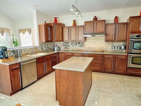 Stunning and stylish home on one of the best lots backing to open space in the desirable neighborhood of Westport Farms. Enter through a covered front porch into a 2-story foyer with arched window, hardwood flooring, and a turned staircase. The adjacent living room has an oversized bay window, elegant trim work, and French glass doors leading to an equally well-appointed dining room with a tray ceiling and oversized bay window. The kitchen is beautifully done with Wellborn cabinets, Corian counters, center island, large pantry, stainless steel appliances, ceramic tile backsplash and 18" tile flooring which extends into the adjacent morning room. The morning room offers a vaulted ceiling, atrium window and sliders to a large rear paver patio with accent walls and a spacious rear yard enclosed with maintenance-free privacy fencing. The kitchen is also open to the adjacent 2-story family room boasting bamboo flooring, abundant windows, and a gas fireplace. A 1st floor study with hardwood flooring could also function as a 5th bedroom. A spacious powder room and separate laundry room complete the first floor. The master bedroom offers a sitting area, large walk-in closet with organizers, and a luxurious master bath with soaking tub, dual vanity, linen closet, ceramic walk-in shower and flooring. The other three bedrooms are nicely sized and offer great closet space. The hall bath is well-appointed with tile flooring. A full basement with egress window is ready for finishing. 9' ceilings, modern 2-panel doors, stylish light fixtures, spacious rooms with great architectural features, neutral paint, great natural light, and tasteful d~cor throughout make this home a must-see winner for the discriminating homebuyer.
