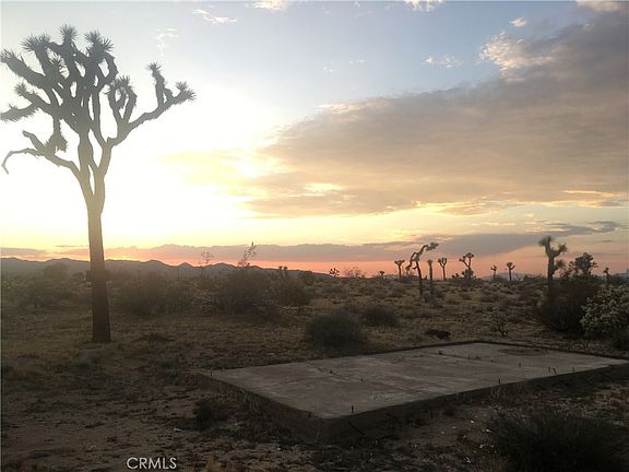 Prime 5 acre property in Yucca Mesa. The elevated location allows spectacular desert views to mountains in the distance. Water in the street including a fire hydrant and power close by. Great potential with newer homes in the neighborhood. Popular short term rental area. Desirable natural desert vegetation including Joshua Trees and Yucca. Weathered 24' x 12' slab provides an amazing platform to enjoy sunsets and stargaze. Short drive to Joshua Tree National Park. APN: 0631-041-12-0000.