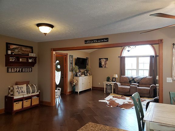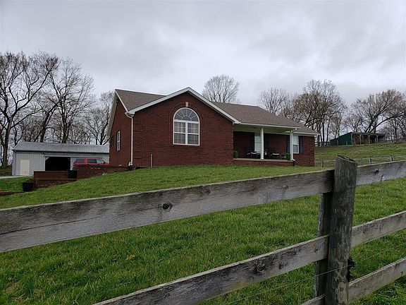 This lovely brick home situated on 8.00 plus acres is located only minutes from downtown Bardstown. Upon entering this home you will find a large living room with vaulted ceiling and an adjoining spacious eat in kitchen with custom cabinetry featuring a large bar and pantry with loads of storage. Stainless steel refrigerator, range, microwave and dishwasher all remain with this home. The first floor also includes a master bedroom ensuite, two additional bedrooms, laundry area and a full bath. The fully finished walkout basement boasts a large play/hobby room, family room, two other all purpose rooms and a full bath. You will enjoy the 8.00 plus acres of views with extras including a metal barn, shop building, pond and lots of fencing. Dont miss out on this great property.