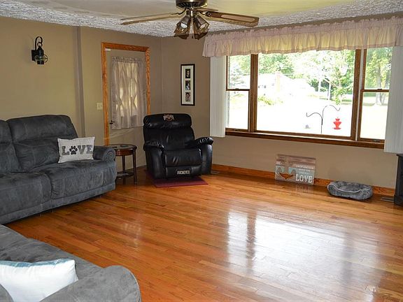 Ontario brick ranch sitting on 1.21 acres. 3-4 bedrooms. Large living room with beautiful hardwood floors. Quality updated applianced eat-in kitchen with quartz countertops. Anderson sliding glass door opens to the covered back porch and large kid-friendly backyard. New central air (2019). Glass block windows allow an abundance of natural light in the finished basement with rec room, game room, and fourth bedroom, adding 713 square feet. Freestanding wood stove. Water softener. Washer and dryer included. Newer yard barn with covered porch and electric. Two car attached garage. Bowling alley topped workbench stays. Nicely landscaped. Long concrete driveway. Shown by appointment only.