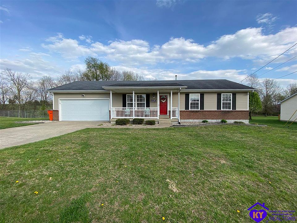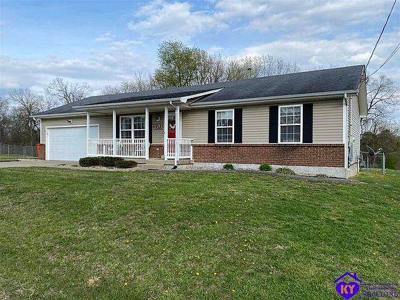 This adorable ranch is a must see! Sitting on over an acre of land and close to Etown shopping and dining with an easy commute to Ft. Knox. Walk into open floor plan living space with cathedral style ceilings, a lovely kitchen space with plenty of great cabinetry, stainless appliances, and bar seating. Dining space features bay window, and access to the back covered deck perfect for warm weather dining and entertainment. Down the hall, find the master suite with tray ceilings and full bath with vanity space and walk-in tiled shower. Two more large bedrooms, full bath, and large laundry closet complete the space. Huge lot offers tons of options for play, gardens, and more! Don't miss this one! Take the virtual tour and schedule your showing today!