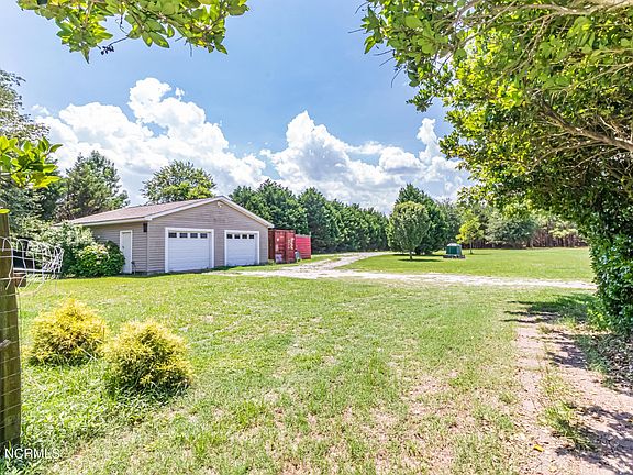 WANT at least 5 acres? The interior and exterior space you've been waiting for... situated well off the road, this property boasts 5.5 ACRES and has NEWER ROOF and HVAC.Bring your chickens or horses or other farm friends to live in the UNRESTRICTED rear yard. The split-floor plan property offers 4 bedrooms, 2.5 baths, an den/office, a stone-walled fireplace, walk-in closets, rocking chair front porch, covered DECK and a tree-lined rear and side yard. The master en-suite features double vanity, soaking tub and walk in shower. Three (3) of the 5.5 acres offers maturing loblolly pine trees for additional rear PRIVACY or timber, pine straw opportunities.Separate LAUNDRY ROOM w/ sink, DETACHED DOUBLE car WIRED GARAGE with workbench and shelving, detached lean-to shelter as well as detached shipping container for additional storage! Enjoy grapes, apple and pecan trees. Don't blink!