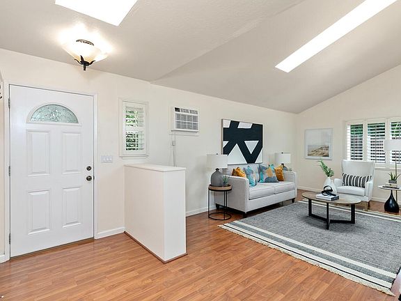 Single level end unit with high ceilings and light filled living room through two skylights. The condo has recently been renovated with newer floors, fresh paint, wall air conditioner, and updated kitchen and bathrooms. There is a stackable washer and dryer, jetted tub, window shutters, extra storage room, 1 car garage, an extra deeded parking space, and a private backyard with deck and patio. It is a short drive to downtown Pleasant Hill, Concord/Pleasant Hill Bart or Highway 680, and is next to the Iron Horse trail. Pets are welcome. Renter responsible for water, gas, and electric. No smoking.