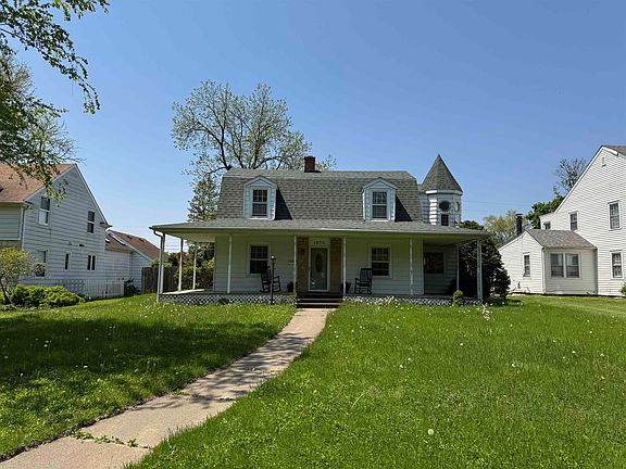Charming 1.5-story home thoughtfully updated while preserving its original character. Picture yourself sipping lemonade on the inviting front porch, set on a spacious lot in Rochelle. As you step inside, the living room welcomes you with fresh paint, new carpeting, and a cozy wood-burning fireplace. A door leads from the living room to the sun porch, perfect for relaxing or entertaining. The dining room shines with new light fixtures new flooring and a fresh coat of paint, creating an ideal space for gatherings. The kitchen boasts brand-new quartz countertops, stainless Frigidaire appliances, updated flooring, and a fresh paint job, along with a convenient half bath just off the kitchen. Upstairs, you'll find three comfortable bedrooms and a versatile playroom. The master bedroom is a true retreat, featuring a massive walk-in closet and tower/sitting area. The spacious full bathroom offers a double sink, shower, and tub for ultimate comfort. Storage won’t be an issue in this home, which also features a 90% gas forced-air furnace, two staircases leading upstairs, and a cozy family room in the basement. The garage measures an impressive 29’ x 21’. and this home is right across from the school and a block away from the new Rec Center.