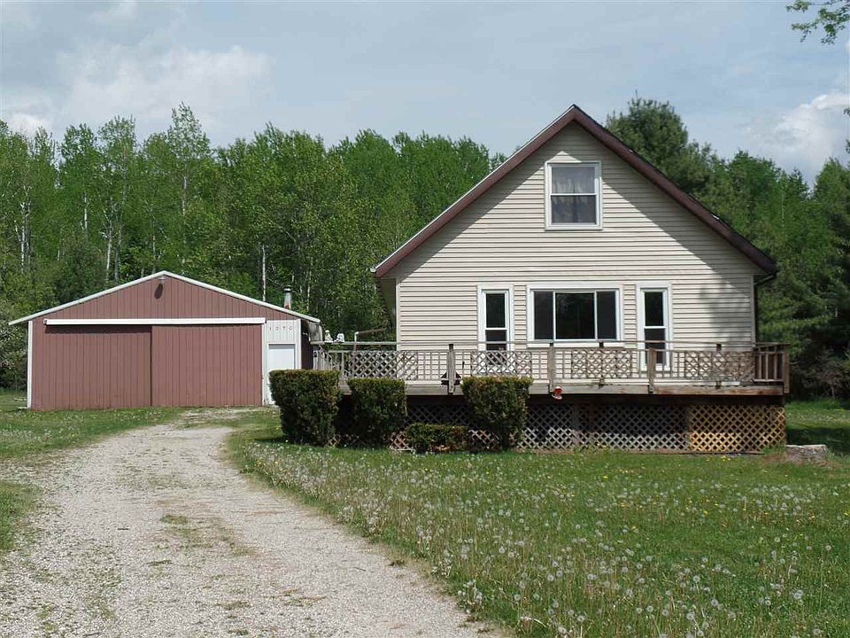 This home has a lot to offer, central air, attached generator for power if lights go out, ten acres, addition on the back of the garage, that would be great for horses. lots of decking and another storage shed. Half way between Fairview and Mio