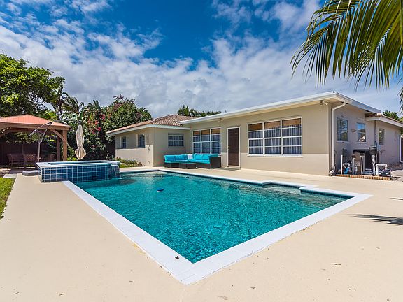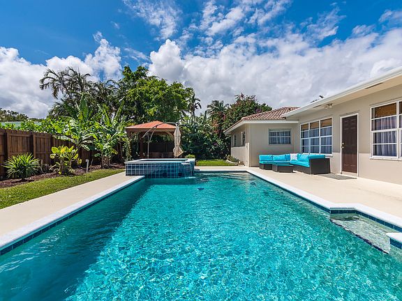 Beautifully renovated 4 bedroom, 2 bathroom home in central Boca's sought after school district and neighborhood of the Pinelands. This property was recently completed with a brand new kitchen and new appliances, new bathrooms, new tile flooring, new Nest, new and newer AC units, even new PVC plumbing throughout. The convenient split floorplan is bright, airy and inviting. The lush and tropical garden oasis hosts a tranquil private pool, hot tub and gazebo complete with electric for lighting and entertainment. Ample space for storage of a shed, trailer, boat or RV can be found on the side yard. The property is conveniently located and close to schools, shopping, restaurants and the boca regional hospital. The perfect home and backyard to enjoy family time or dinner with friends.
