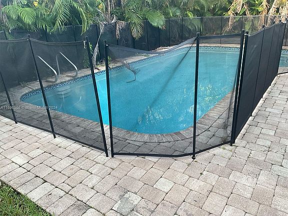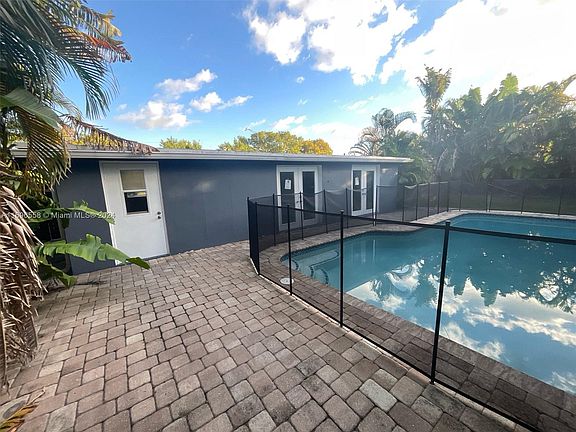 This updated pool home showcases a modern design with white kitchen cabinets offering ample storage and sleek stainless steel appliances. Featuring numerous contemporary updates throughout, the property also boasts a private backyard with a below-ground pool, ideal for family gatherings, pets, and outdoor entertaining.