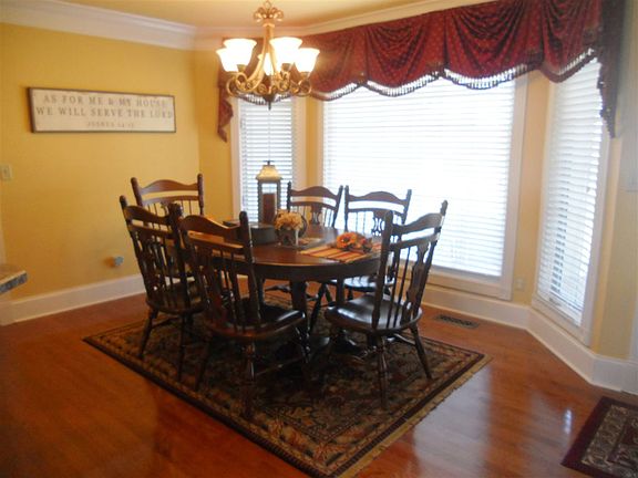 So pretty and well cared for. Hardwood flooring, tray ceilings and beautiful windows are some of the extras. You'll enjoy sitting on your covered back porch or patio which has a view of the pond. Attached garage plus a detached garage. Appliances all stay including washer & dryer. Open floor plan, 3 bedrooms & 21/2 baths.