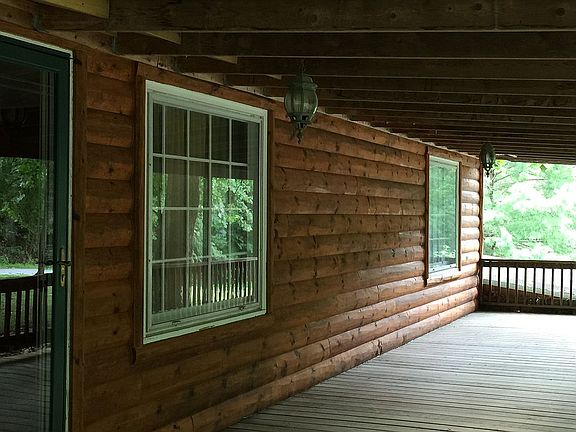 Log sided 2 bedroom 1 bath cabin in a beautiful rural setting. Features several mature shade trees on a 3 1/2 acre parcel. All electric, with central heating and air conditioning. Nice kitchen with stainless steel stove/oven, microwave, dishwasher. Garbage Disposal also. Full covered front porch completely shaded for a relaxing afternoon of reading or enjoying the natural beauty of your surroundings. Gas fireplace even makes the inside a cozy place to relax. Basement not finished but walks out to a Large attached carport with one bay and a huge enclosed storage area. 30x30 pole barn garage complete with garage door openers. This home is priced to sell...