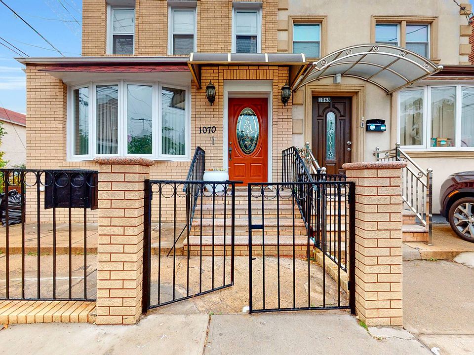 Carnarsie- 2 family bright sun filled home, semi detached, meticulous home. 3 bdrm top Fl unit w skylight over 2/3 bdrm first floor unit with full finished basement with separate exterior side access. Great home office. 5-6 bedrooms, 3 full baths. Original hardwood floors, replacement windows thru out, ceramic tiled floors. Updated bath and glass shower. Beautiful fruit garden, private 2 car parking gas heat with separate gas hot water heater. Excellent move in condition. A very versatile, income producing property. Great investment opportunity! Convenient to shopping on Flatlands Ave, schools and transportation.