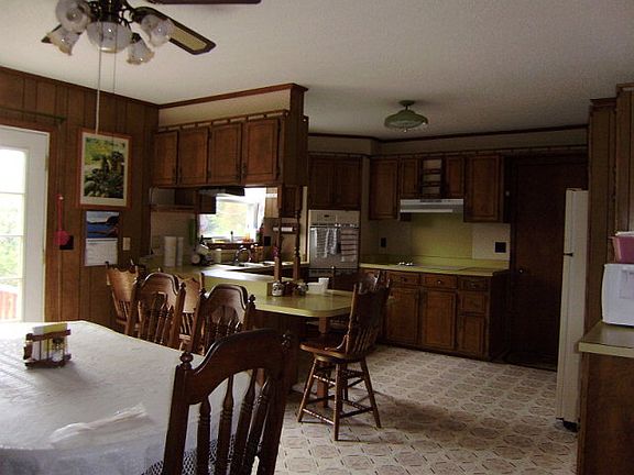 Well maintained 3Br 2 Ba Brick Rancher on 5.1 acres with 2 garages, one up,one down,located in the quiet country setting with great views. There is a sink and a cook stove in the basement, floors and walls just painted garages as well.Large tobacco barn with dirt floor has some potential