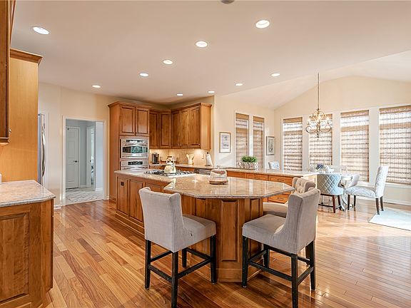 BEAUTIFUL OPEN FLOOR PLAN, CHEF'S KITCHEN WITH OVERSIZED GRANITE ISLAND, STAINLESS STEEL APPLIANCES, SPECIAL CABINETRY HOLDS YOUR KITCHENAID MIXER UP TO COUNTER HEIGHT WITH DEDICATED IN-CABINET OUTLET, AMAZING HARDWOOD FLOORS, BREAKFAST ROOM - OVERLOOKS PAVERED LANDSCAPED POOL AREA, BUTLERS PANTRY BETWEEN KITCHEN AND SPACIOUS DINING ROOM, LARGE OPENED LIVING ROOM (CONTINUES FROM KITCHEN AREA) 1ST FLOOR BEDROOM OR OFFICE, 3 BEDROOMS UPSTAIRS, LARGE MASTER W/ HUGE WALK IN CLOSET, SPA TUB, TRAY CEILING, MOSTLY FINISHED BASEMENT W/ BUILT-IN'S, CLOSETS FOR SEASONAL CLOTHING STORAGE, UNFINISHED AREA HAS STORAGE SHELVES, GARAGE IS OVERSIZED (700 SQ FT) PAINTED AND DRYWALLED. SO MUCH TO SEE! IMMEDIATE POSSESSION AVAILABLE.