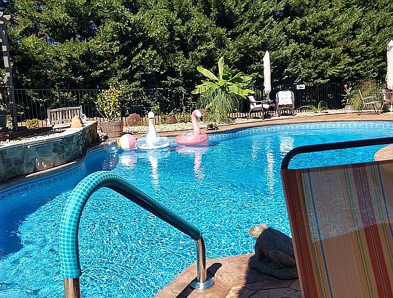 Beautiful brick/stone front & gorgeous lot w/fenced yard. Hardwoods 1st floor. Formal dining w/trey ceiling, tile floors & butler pantry. Bright fam rm w/stacked stone fp. Gourmet kitchen w/granite & upgrades galore. SS appls, center island & keeping room w/2nd fp. Fabulous master suite w/sitting area, balcony & a dream walk-in closet! Large pool & patio + porch off bfast
