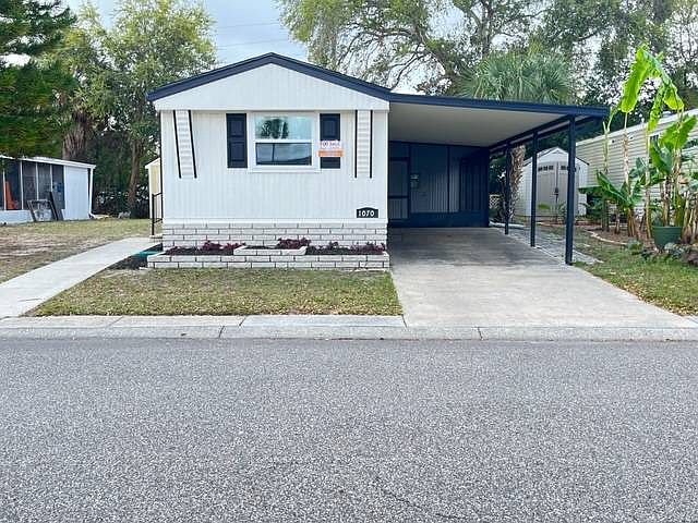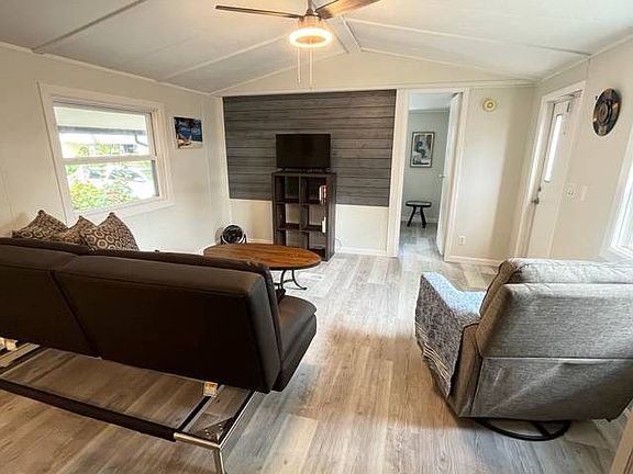 Located in quaint Tarpon Springs, Tarpon Glen is a 55+ retirement mobile home community which features on-site fishing, shuffleboard, and a community swimming pool all set among the beautiful palm trees that the area is famous for. Tarpon Glen also offers you a spacious clubhouse to host social gatherings and organized community outing and planned activities. Enjoy the nearby beaches, state parks, and world-famous Sponge Docks. This 1984 home has had a COMPLETE REMODEL from top to bottom. You are going to fall in love with all this home has to offer. The home features all new appliances, new roof, new air conditioning, new windows, new flooring, new paint inside and out and a new vapor barrier. The living room features vinyl flooring, cathedral ceiling, upgraded fan and light, ship lap detail wall and front door entry. The living room is open to the kitchen. The kitchen is AMAZING and all new. There are new cabinets and counters, appliances, double stainless steel sink, tile backsplash, and huge island with butcher block and lots of storage. There are bar stools at the island and neutral walls. There is also a large pantry. The master bedroom has a bead board detailed wall, new floors, a double closet and is a lovely space. The bathroom has a new step-in shower, high vanity, high toilet, and ship lap look walls with a transom window in the shower. The second bedroom is a great size and has neutral walls and flooring and a double closet. The lanai is a great outdoor space and where you'll find yourself spending all of your time. Access to the shed is in the lanai. All Florida Mobile Home Sales Inc. cannot guarantee or warrant the accuracy of this information or condition of this property. The buyer assumes full responsibility for obtaining all current rates of lot rent, fees, and pass-on costs. Additionally, the buyer is responsible for obtaining all rules, regulations, pet policies, etc., associated with the community, park, or home from the community/park manager. All Florida Mobile Home Sales Inc is not responsible for quoting of said fees or policies. LOT RENT: $680 and includes water, sewer, lawn, trash and taxes.