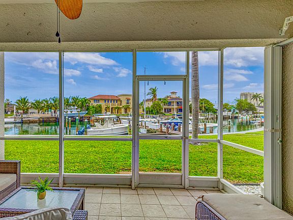 Enjoy waterfront living in this gorgeous 2 bedroom, 2 bathroom, 1st FLOOR condo complete with your very own 35 ft BOAT SLIP and dock box. Enjoy water views on your private screened and covered patio year round. This TURNKEY unit features stainless steel appliances, recently updated flooring, granite countertops in open kitchen and baths, private laundry LG washer/dryer combo, IMPACT windows and accordion storm shutters. This is Florida waterfront living at its best! Sugar Sands is a friendly, active 55+ community with a social clubhouse, Olympic size swimming pool, tennis courts, sauna, shuffleboard, billiards, outdoor seating with gas grills, and common dock. Walk to public beach and Phil Foster Park. Close to great restaurants, shopping, and airport