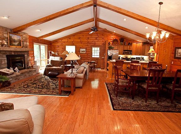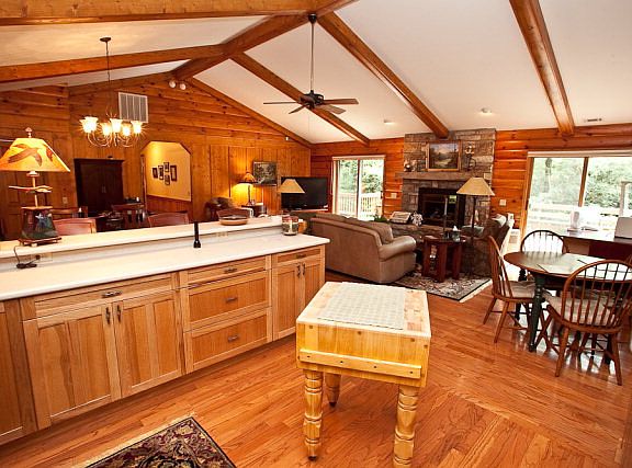 Coveted in town location 1 block to Harris Lake and Main Street. Open, vaulted floor plan with massive granite fireplace, large kitchen, breakfast bar and formal dining room. Nice size master with ensuite bathroom. Enjoy the private back yard and deck surrounded by mature foliage. All appliances included. Locations like this are hard to come by. Come take a look!ALSO INCLUDES PARCEL ID #744958844 2014 TAXES $309.05.