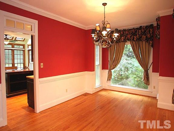 Spacious 2.5 STY on a Large Wooded Great Corner Lot in Great N. Ral N'hood w/Large Backyard & Lots of Privacy. Traditional flr plan w/fam rm, sep liv rm dining rm & kit with breakfast area. Main level has hdwds w/remainder carpeted & dual stairs. 4BR w/large bonus rm & extra rm for office/study. Perfect for entertaining with large deck & patio adjacent to pool & sun room. Large garage with area for storage & workbench. HSA Home Warranty included.