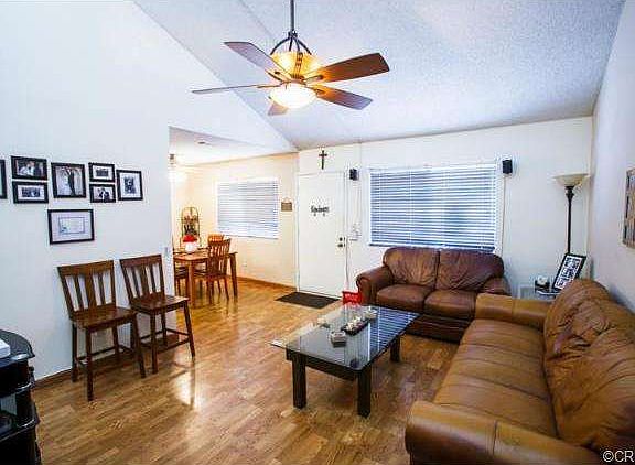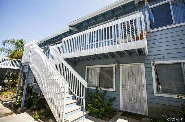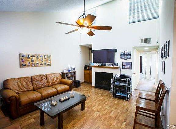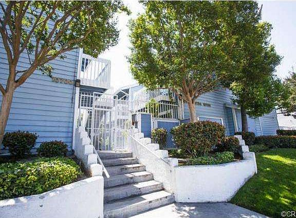 Spacious 2 bedroom 2 bath upper unit located in a Quiet & Gated Planned Community! Enjoy maintenance free living, plus association pool, 2 spas, BBQ, and green area. The living room features impressive high ceilings, plenty of window exposure, and mantled-fireplace. Easy flowing floor plan between living room, dining area and kitchen. Both bedrooms are very spacious and offer walk-in closets and sliding doors to the balcony. Two full baths with tub/shower enclosure. The interior has been recently painted a neutral designer color. Wood laminate floors in living, dining and kitchen. Newer carpet in hallway and bedrooms. Inside laundry hook-up is located in the kitchen behind folding doors. Three gates available for entrance. Pet friendly community. Home Sweet Home!