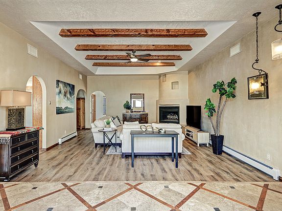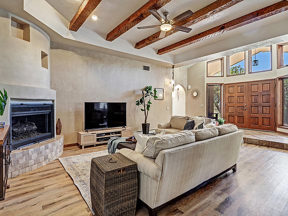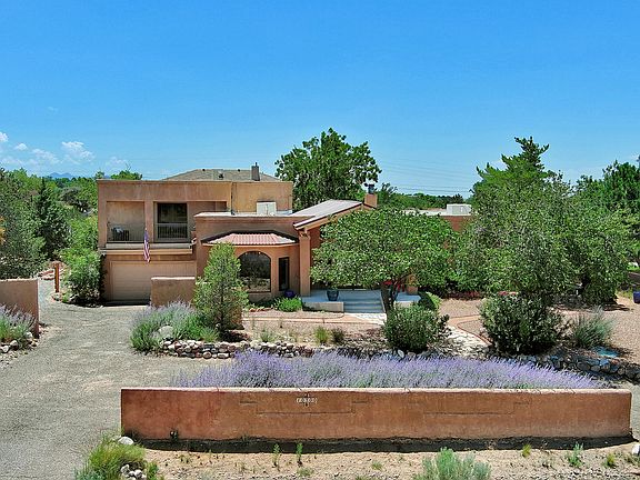 North ABQ Acres, custom built home on .89 acres with city & mountain views has room for everyone! 4 en-suite bedrooms with 3 downstairs and one up, lends itself to privacy and multigenerational living. The upstairs primary suite has 2 balconies, & a private loft/reading nook. The downstairs primary has a bidet, soaking tub, double sink vanities, & 2 closets. The kitchen has lots of counter & cabinet space & opens to the dining room. This home has lots of natural light with clear story windows & skylights. Beautiful tile work with wood inlay entry that opens to an inviting living room with beam ceilings. Beautifully landscaped with decks & waterfall. 3 zoned cooling system, private well, & two septic systems with leach field & drain pipe replaced in '22. Metal & TPO roof installed '21.