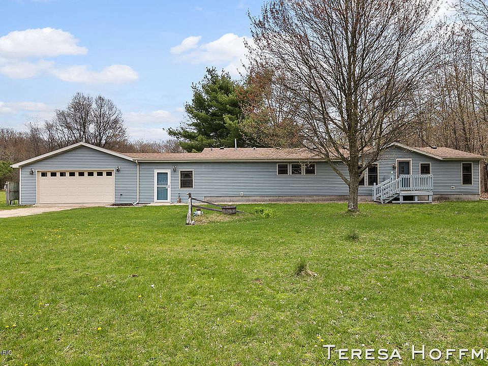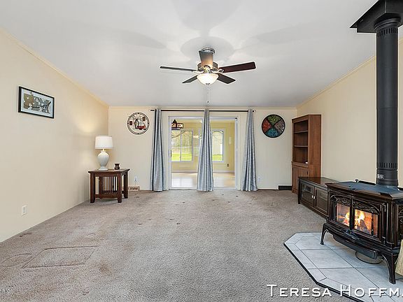 Welcome home to this 3 bedroom, 2 Full bath with open concept and beautiful 3 season porch. Enjoy baking in your updated kitchen with quartz counter tops . Master bedroom has updated master bath with tiled walk in shower. Enjoy a nice fire in the evenings and wildlife views on your 3 season porch. The large 2 stall garage has a workshop in the back and additional approx 22x26 pole barn in the fenced back yard. Come and checkout this very peaceful setting on 4.86 acres.