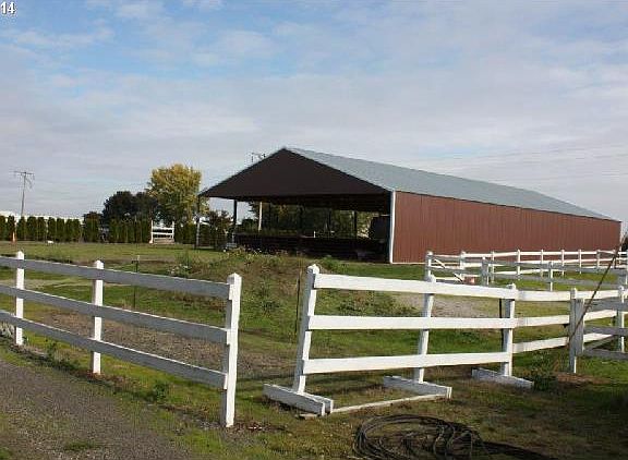 Equestrian Gentlemans ranch located less than a few miles to the city. This 5 plus acres ranch includes a lovely 4 bedroom, 2.5 baths, tons of upgrades, beautiful kitchen with stainless appl, convec. oven, custom cabs, tile and wood floors, copper framed fireplace, walk in tile shower, glass doors lead to the pergola covered deck, 60x120 covered riding arena, 36x26 shop, 5 stall hay barn w/tack room, paddocks w/shelters, fenced.