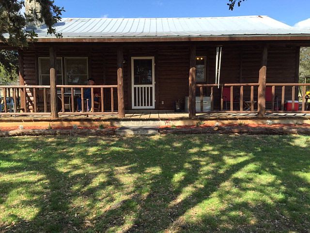 UNRESTRICTED! Charming log cabin on scenic acreage located in the quiet town of Fischer, just north of Canyon Lake. This sparkling little jewel sits far back on 11.7 secluded acres surrounded by majestic oaks and wildlife. The house looks the part of a frontier Texas home, with vaulted log cabin ceilings and a beautiful rock fireplace constructed from stones found on the land. The property has two barns, first barn is 34 x 43, second barn is 20x20. There is a large chicken coop and an additional storage shed.