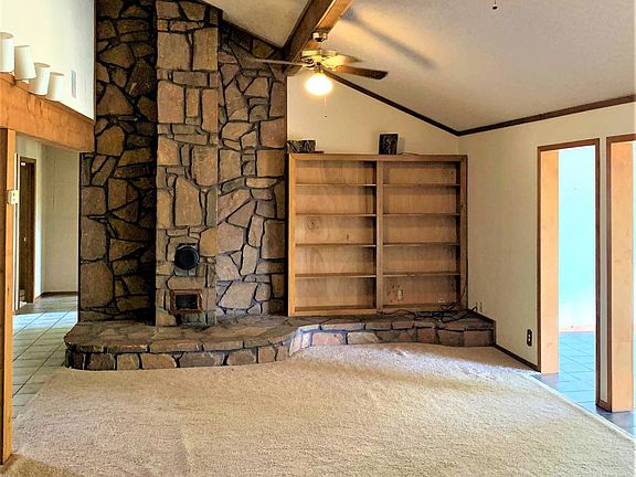 Beautiful home sitting on a hill overlooking rolling pastures. The rock home is 2400 +/- sq. ft. with an open floor plan and three bedrooms and two baths. The home has CH&A and a wood heater. The house has a metal roof and a two car garage plus a 30 x 50 +/- foot shop building with living quarters, all sitting on 6 acres.