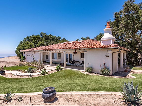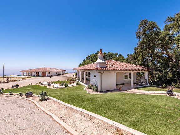 Continue the dream while you enjoy the view of the Channel Islands on full display with panoramic view of the Pacific Ocean. This enticing setting is on a mountain top, primed for the 3rd phase of luxury living on a 45-acre estate. Owners built guest house first to live in while building the final phase, a 4000 sf main home. Total sf of both homes is approx. 3000 sf. Underground utilities are in. Guest house has 3 bdrms, 2 baths and amenities in 1,122 sf. Mexican limestone flooring; countertops are French Beaumaniere. Incredible entertainment opportunities for the separate pool house, with outdoor fireplace and covered porch, designed to be connected to the main home. The indoor pool house is approx 2100 sf, with a massive spa and European sauna, 3 bdrms, 1 bath; living room and kitchen. Rooms could be an art studio or office. The pool is Red Turkish limestone. Lighted Bocci ball court nearby for round-the-clock entertaining. . Design features are whimsical and the located well off the main road behind 2 gates. Solar panels heat dwellings and pool; private well, two 5000-gallon water tanks, and 250-gal propane tank and12 rainwater tanks. There are 200 Dolecetto grapevines to be harvested in the fall. Arena has been lasered to a 1% N/S grade for h