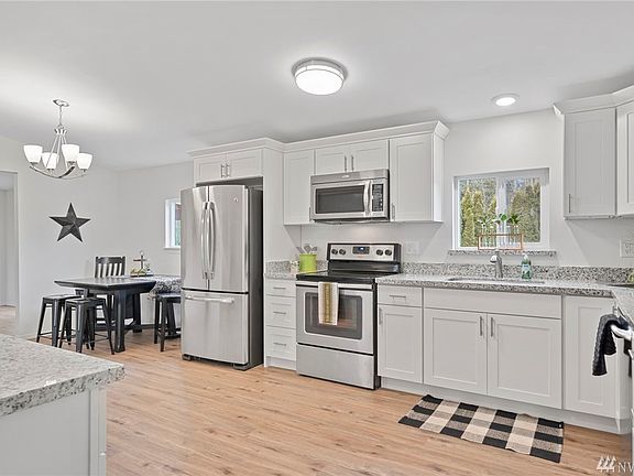 This rambler is HUGE and sits on over a 1/4 acre! This 3 bed, 2 bath home features a highly desired open floor plan and has upgrades like new ext/int paint, newer roof/gutters, LVP flooring, new cabinets, granite counter tops, energy efficient vinyl windows, SS appliances, new fixtures and a finished outbuilding. Large master suite with master bathroom. The property is at the end of a dead end road and is very private. Close to award winning schools, freeways, Paine field, shopping and more.