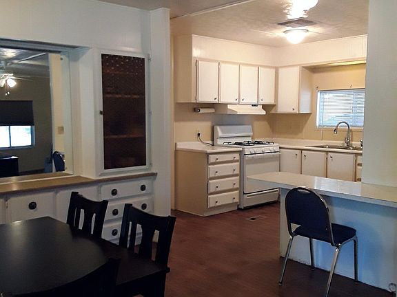 Opportunity knocks! Must see this lovely 2 Bdrm, 2 Bath double -wide home that's ground set-no stairs. 2 car carport, 2 large storage sheds, corner lot, nice sized fenced-in back yard for privacy/pets. Newer AZ room addition constructed in 2018 is light & bright [220 SF] with new windows, separate AC unit [mini-split] keeps it cool/comfortable. Bonus rm could be used as a Hobby/Office-Game Rm. Main house is 1,040 SF'. Newer 4-ton ground AC unit [2019] + gas water heater [2020] Attractive wood plank laminate flooring throughout. Open floor plan, inside laundry incl W/D. Apollo Village is a friendly 55+ age restricted park. Buyer's must apply for lease approval. Lot rent is $763/mo. Park amenities incl. heated pool/spa, clubhouse/workout facility with various social activities.