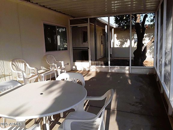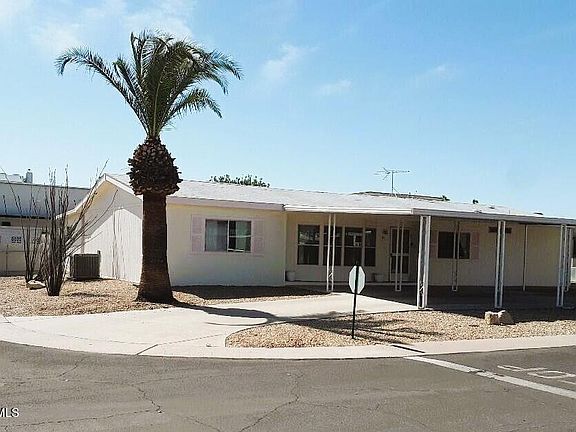 Unique one of a kind home! Circular driveway in front with deep side driveway, corner lot, ground set. Features 3 Bedroom, 2 Bath split floor plan. Vaulted ceilings, separate living & family room, french doors. Large eat-in kitchen, breakfast bar, inside laundry room. All appliances convey. Huge master, walk-in closet, separate tub & shower. Private back yard, spacious screened-in patio, storage shed. All furniture is negotiable. Newer YORK AC unit 2023. Apollo Village is a 55+ age restricted leasehold property. Park lot rent is $848/month & buyer park approval is required. Park amenities include heated community pool/spa, clubhouse/lounge/fitness room/weekly activities including Bingo! Great location to stores/hospitals/restaurants/casino/sports venues & easy access to Hwy Loop 101.