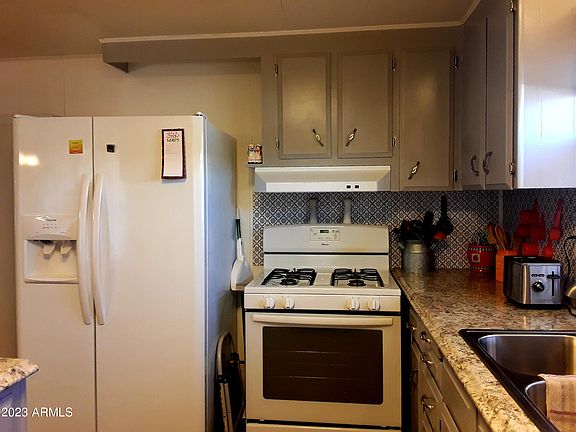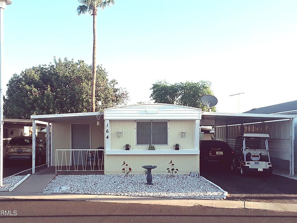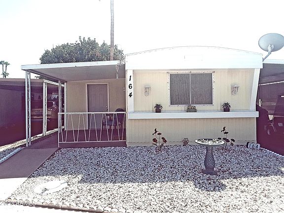 VERY NICE HOME! Well maintained, ground set, shows light & bright with neutral colored flooring/paint. Upgrades include enclosed addition or family room-den area with an adjacent inside laundry room/half bath. Large master bedroom, full size main bathroom. All kitchen appliances stay including frig, washer/dryer. 2 car tandem carport, storage shed, open patio. 1 Year Buyer Home Warranty included. Apollo Village is a pet friendly 55+ age restricted community. Park amenities include heated community pool/spa, clubhouse, library, work out room and many year round social activities. Buyer's and occupants must be park approved to lease the lot. Base lot rent is $768/month. Great location and near a variety of stores, medical clinics/hospitals, sports venues, restaurants, casino & Loop 101