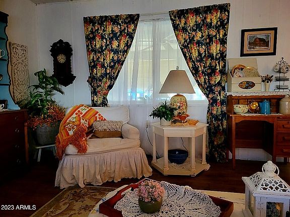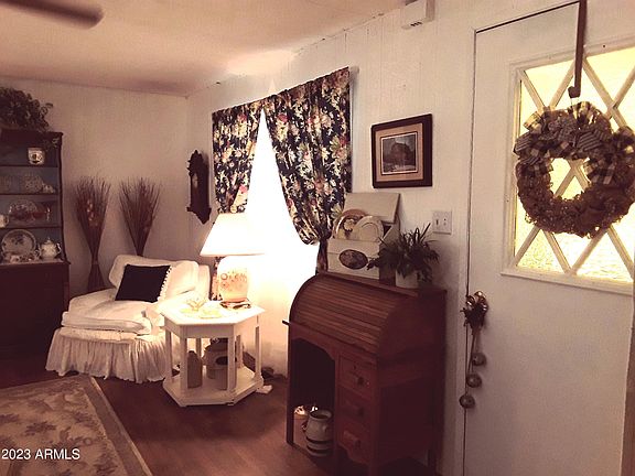Comfortable well cared for home. 2 bedrooms, 2 baths, split floor plan, south facing enclosed AZ room includes full size washer/dryer. 2 car tandem carport + covered patio area, storage shed. Ground set. All kitchen appliances convey, stove top, oven, dishwasher, disposal. Newer updates include AC Unit [2019] H/W Heater [2021], Frig [2020] W/D [2021] + exterior painting. Nice laminate wood floors & carpet in bedrooms. Apollo Village is a friendly 55+ age restricted community. Base lot rent is approx $768/month. All buyer's/occupants must obtain park approval for residency. Pets allowed w/restrictions. Park amenities include heated community pool/spa, clubhouse, library, workout room. Park offers many year round social events & activities. Close to shopping, hospitals, restaurants.