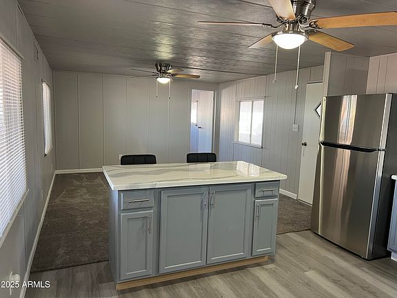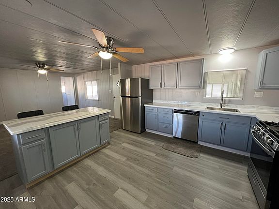 Awesome, Age Restricted Adult Community 2 bedroom, 2 bath home in a fantastic park! New paint, inside & outside, newer A/C, brand new kitchen cabinets, sink, faucet, stainless refrigerator, dishwasher, microwave, garbage disposal, flooring, light fixtures, fans, blinds, toilets, mirrors, kitchen Island, bathroom hardware, bathroom sinks & faucets, all custom counters. The park allows all breeds of dogs/cats & you are allowed to fence in your property. Large shed for storage, & two Arizona rooms, one is screened in & the adjoining one is protected by the elements and is closed with glass windows. New home going in next door. amenities include heated pool & spa open 24/7, workout weigh room, pool tables, shuffleboard tables, card tables, putting green, cul-de-sac lot, dog park & more!
