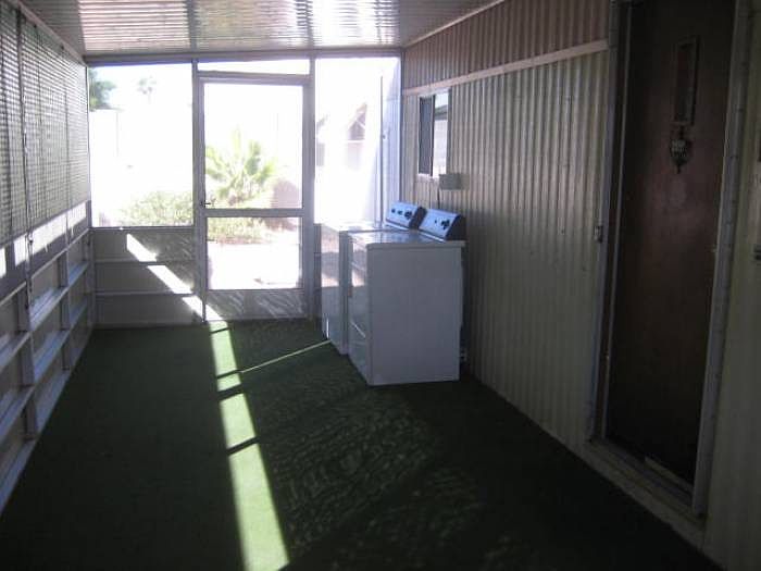 This nice, 2 bedroom, 1 bath home has newer carpet and vinyl. Light and bright home with two sheds, carport and covered AZ room. Nicely priced at 560.00 per month or purchase for only $6,000 with lot rent special.Call us at 623-933-0166 for your personal tour of this lovely 55+ community. Heated pool, spa, billiards, BBQ areas, planned activities and more!