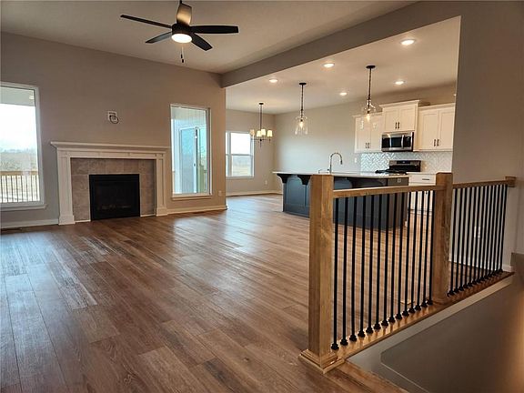 Welcome to The Tahoe by Hearthside Homes! 3 Bedrrooms - all on the main level, providing ample space for a main level office. This villa is on a walk-out lot that backs to green space and the community walking trail. Large foyer enters to the great room with a gas log fireplace. The open plan provides a gourmet kitchen with an island, pantry and breakfast area. Cabinets and island are painted. The beautiful white herringbone style backsplash is a showstopper! The lower level is unfinished and ready for future finish with bath space stubbed in. Exit to a covered deck from the dining area. Below is a covered patio. Cadence Villas allow fencing! Home owners will pay an annual HOA fee of $510 in addition to the monthly dues. Taxes, Sq Footage, room & lot sizes are approximate. A Hunt Midwest Maintenance Provided Community.