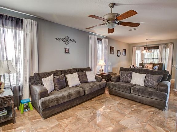 This beautiful waterfront home is located in the coveted community of Panthers Chase. Shopping, Hospitals, Restaurants, and Major Interstates are only minutes away and the community amenities are in walking distance. This property sits on a beautiful waterfront lot and features a huge screened lanai the runs the entire distance of the home. This amazing outdoor space is perfect for entertaining or just adding additional living space in this beautiful Florida weather. It has ceiling fans and TV hookups and overlooks the yard and pond just on the other side of the picket fence. There is also a screened foyer at the entrance of the home that leads you into the living room. The open floor plan allows views of convenient media areas from both the living room and dining room. The kitchen is also very open with access to the large lanai and outdoor dining area as well as a pass through to the dining room. The master suite is conveniently located on the first floor and features its own private bath and walk in closet. Upstairs you will find a large loft/bonus room area perfect for a secondary living room or game room. The remaining three bedrooms are located upstairs as well as a spacious guest bath, providing a second level split from the master suite. This property has a new roof (Nov 2020) a newer hot water heater, high end stainless steel Maytag appliances with a convection oven, dimming light switches, and much more!