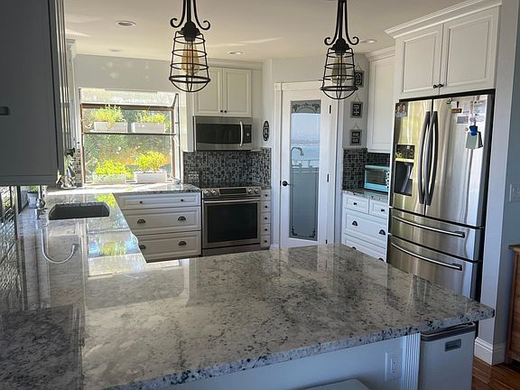 The kitchen is an entertainer's dream. Beautiful white kitchen with bay window and breakfast bar. Dining room has sliding glass doors straight out to the deck. Eat outdoors at least 6 months out of the year.